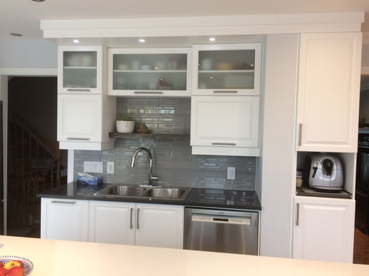 Jeune famille dynamique avec grand besoin d’espace autant au sous-sol qu’à la cuisine. Nous avons remodelé les pièces afin de créer beaucoup de rangement au sous-sol pour les enfants et le bureau. Pour la cuisine, en ouvrant et en éclaircissant, nous avons créé un air de travail qui conjugue avec l’extérieur, la vie active et la chaleur des soupers en famille. Une partie de cette cuisine est la récupération de l’existante.